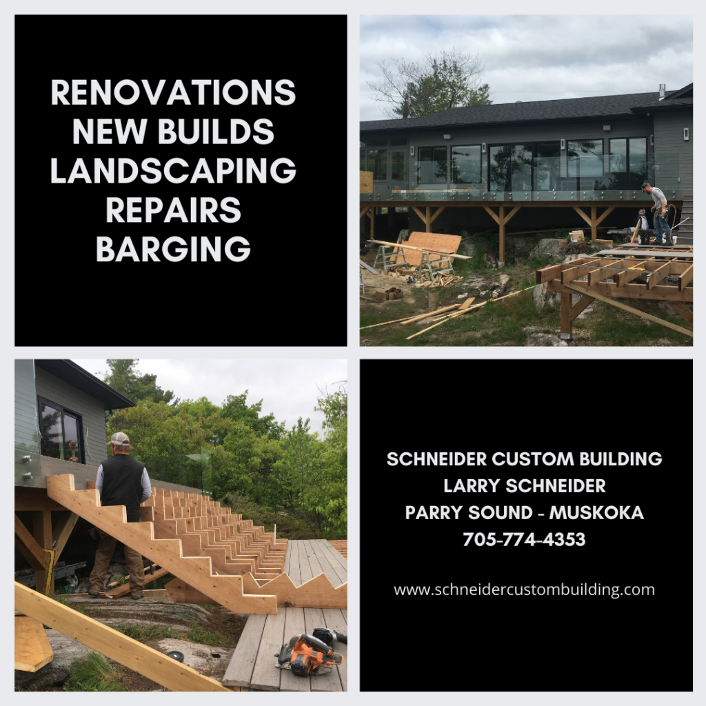 Schneider Custom Building specializes in building high-quality custom homes and waterfront cottages throughout Parry Sound and Georgian Bay. With over 20 years of experience, we bring craftsmanship, attention to detail, and reliable project management to every build.